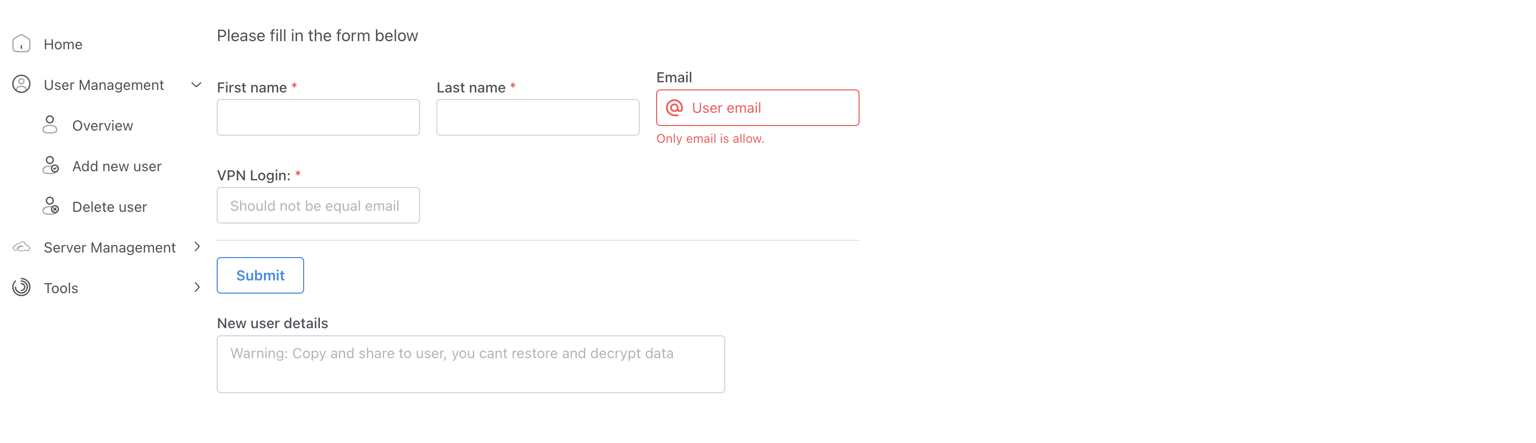 Niflheim VPN server имеет простой веб-интерфейс, которым вы можете воспользоваться для удобства работы.