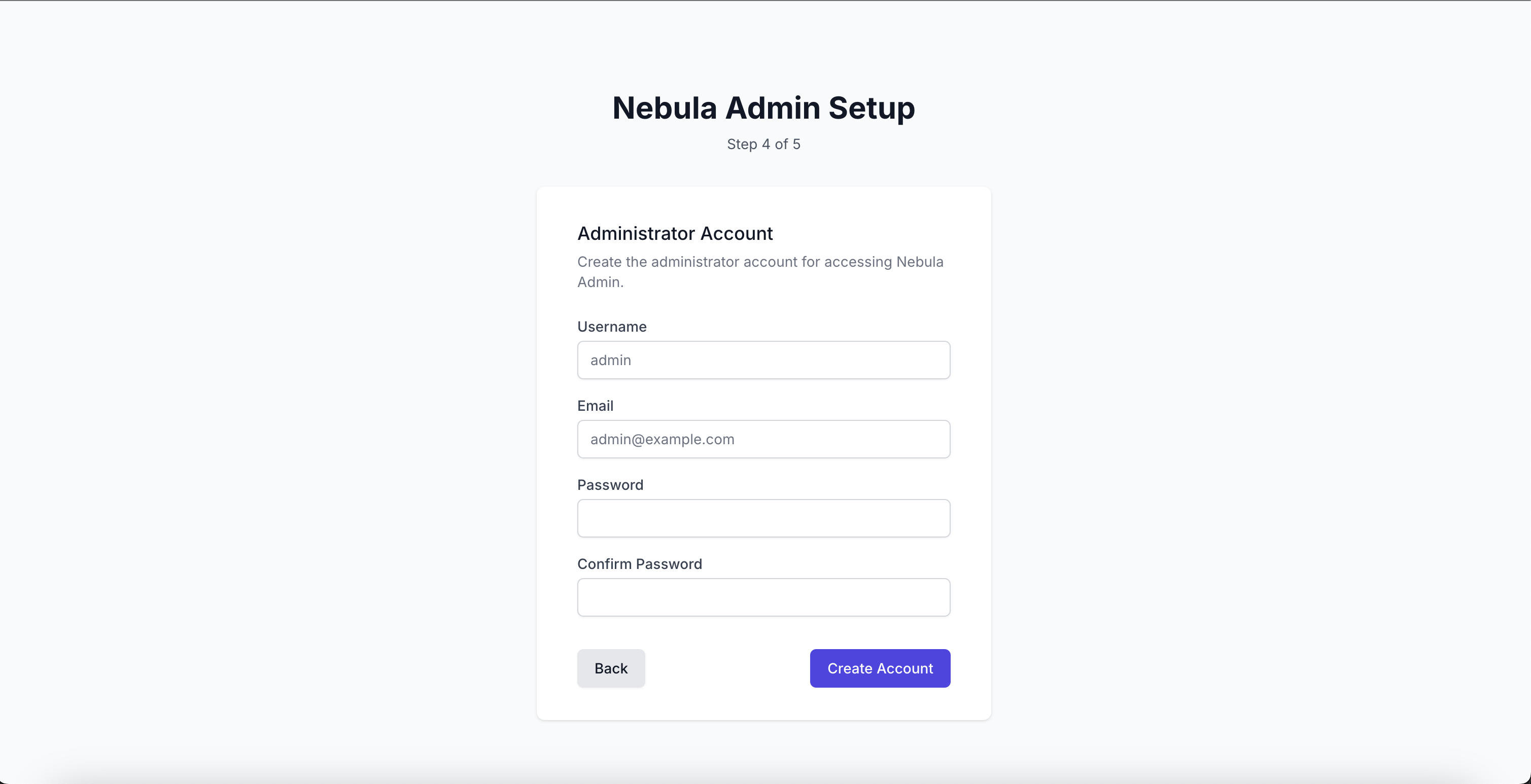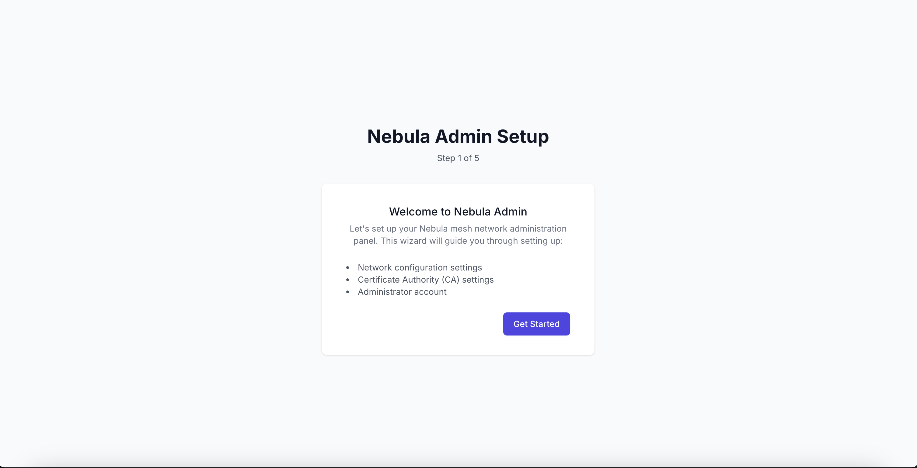 Первоначальная настройка панель управления для Nebula