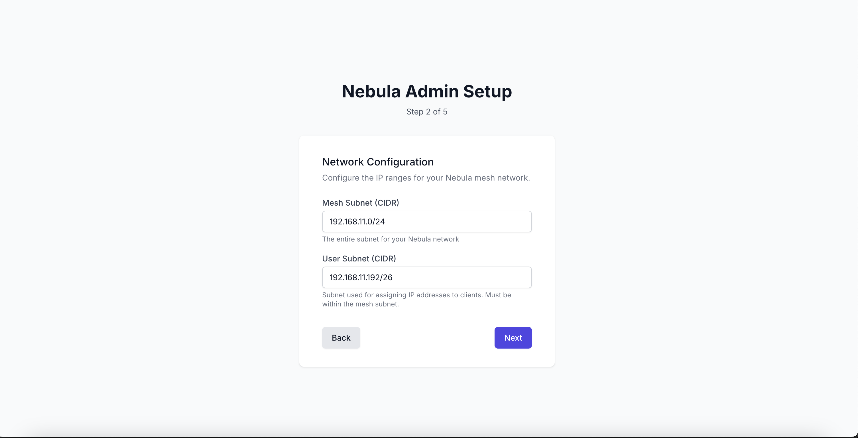 Далее необходимо задать Подсети для MESH сети, а так же клиентскую подсеть и нажать Next